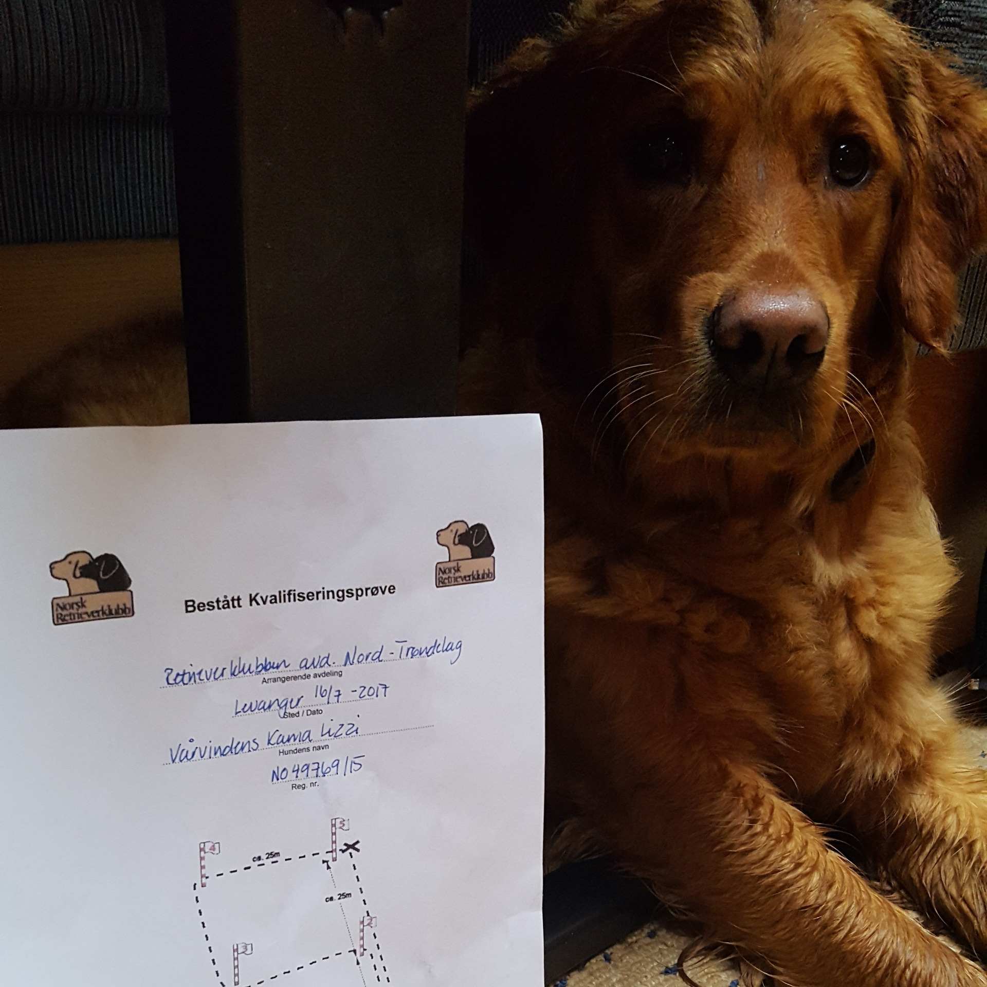 Vi har bestått kvalifiseringsprøven på jakt. Skal melde oss på retriverjaktprøver etterhvert. Lizzi har vært med på både elgjakt, hjortejakt, rådyrjakt, storfugljakt, rypejakt og andejakt. Vi har også trent rallylydighet, og var med på ett stevne. Det gikk veldig bra, og vi fikk 191 poeng og 1.premie og direkte opprykk til klasse 2. Vi deltok på to eksteriørutstillinger da hun var unghund og der fikk hun Very good på begge. I åpen klasse fikk hun Good.